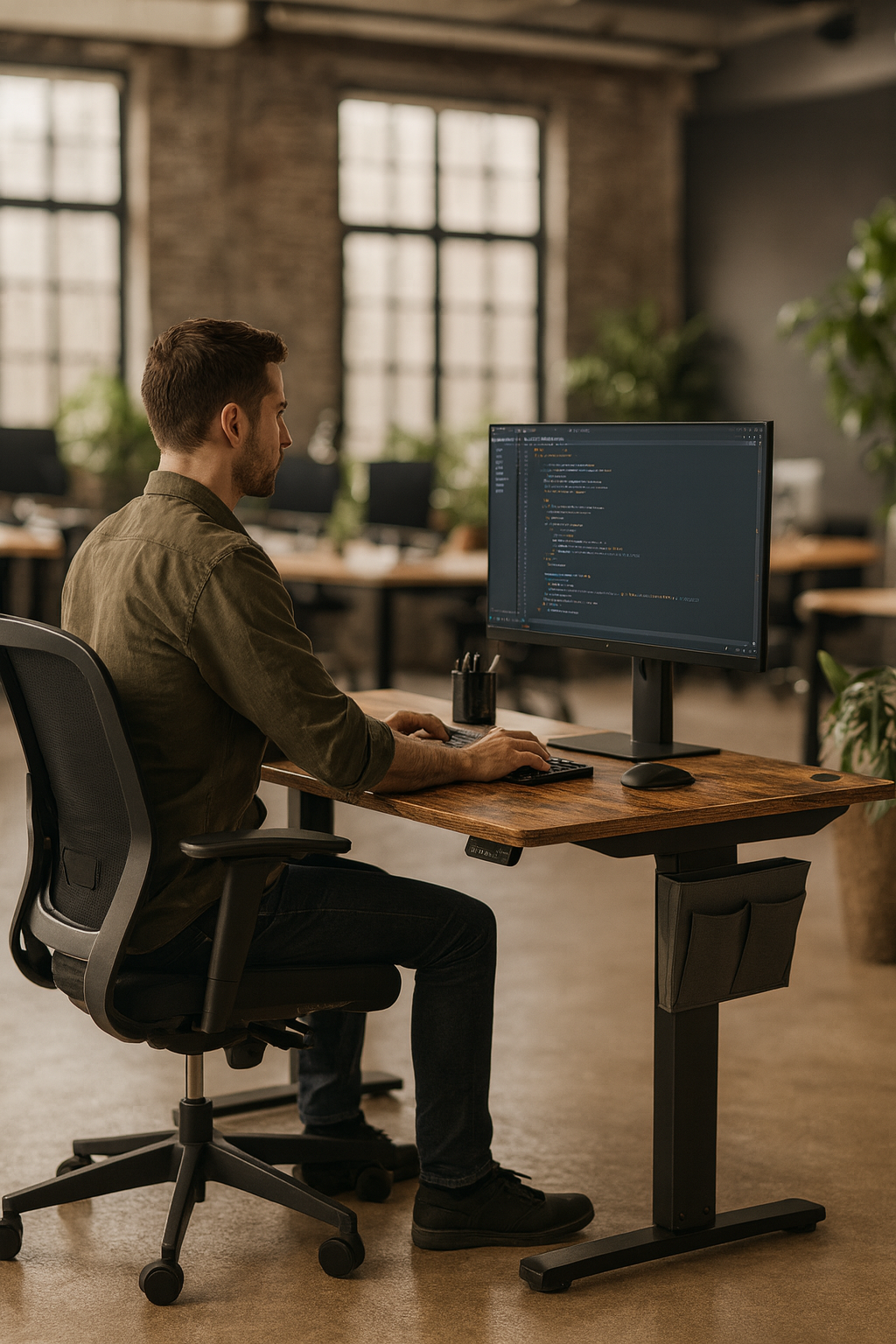 Nous repensons le mobilier de bureau pour améliorer la posture et le confort au travail assis. À partir de nos observations et d’échanges avec des experts, nous concevons des bureaux et des chaises favorisant une posture stable et durable. Notre démarche itérative intègre les retours des utilisateurs et les évolutions du travail, notamment le télétravail hybride, pour proposer des solutions fonctionnelles adaptées aux besoins actuels.